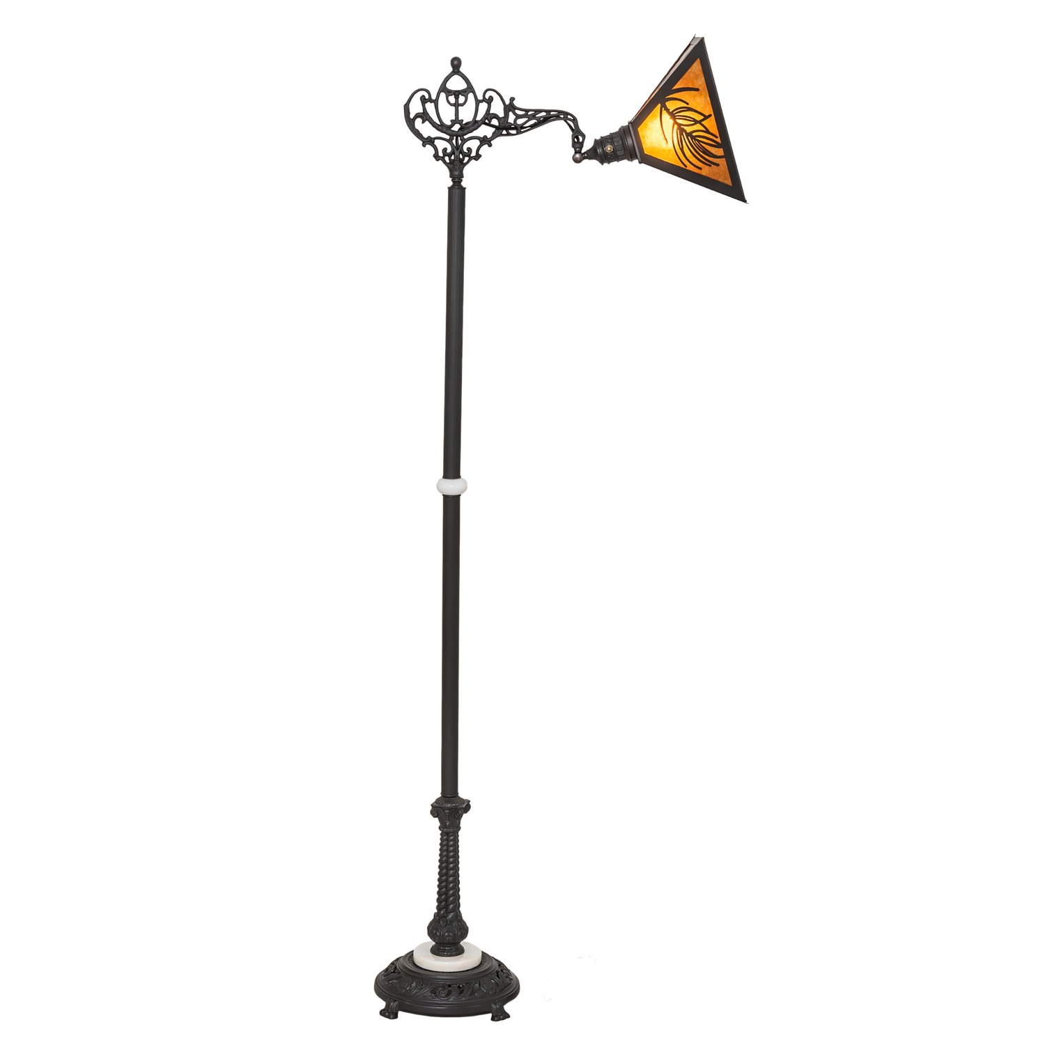 Rustic Loon Pine Needle Floor Lamp, 68” High, Wrought Iron with Amber Mica Shade