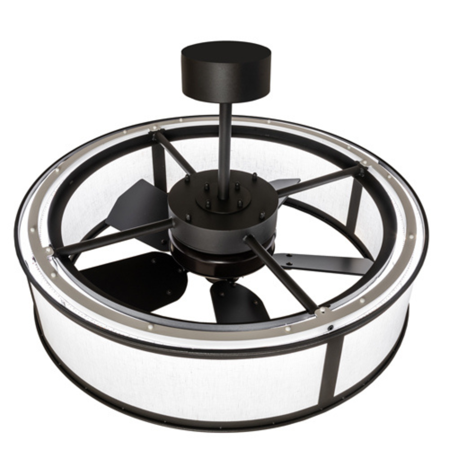 The Smythe Craftsman Chandel-Air brings timeless design and modern comfort together in a handcrafted 36-inch ceiling fixture. Its Eggshell Textrene diffuser glows softly, complemented by a matching bottom shade and Old Wrought Iron frame. Integral LED inner lights enhance the fabric’s texture, while four downlights provide functional illumination below. A central fan circulates air quietly for cooling breezes in summer and recirculated warmth in winter. Made in Yorkville, NY, this American-crafted piece is UL and cUL listed for dry and damp locations, perfect for Craftsman-inspired interiors or upscale hospitality settings.