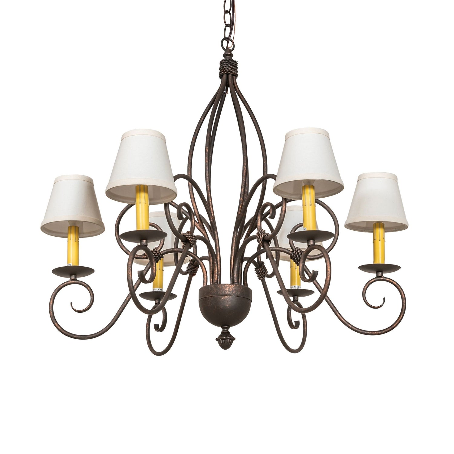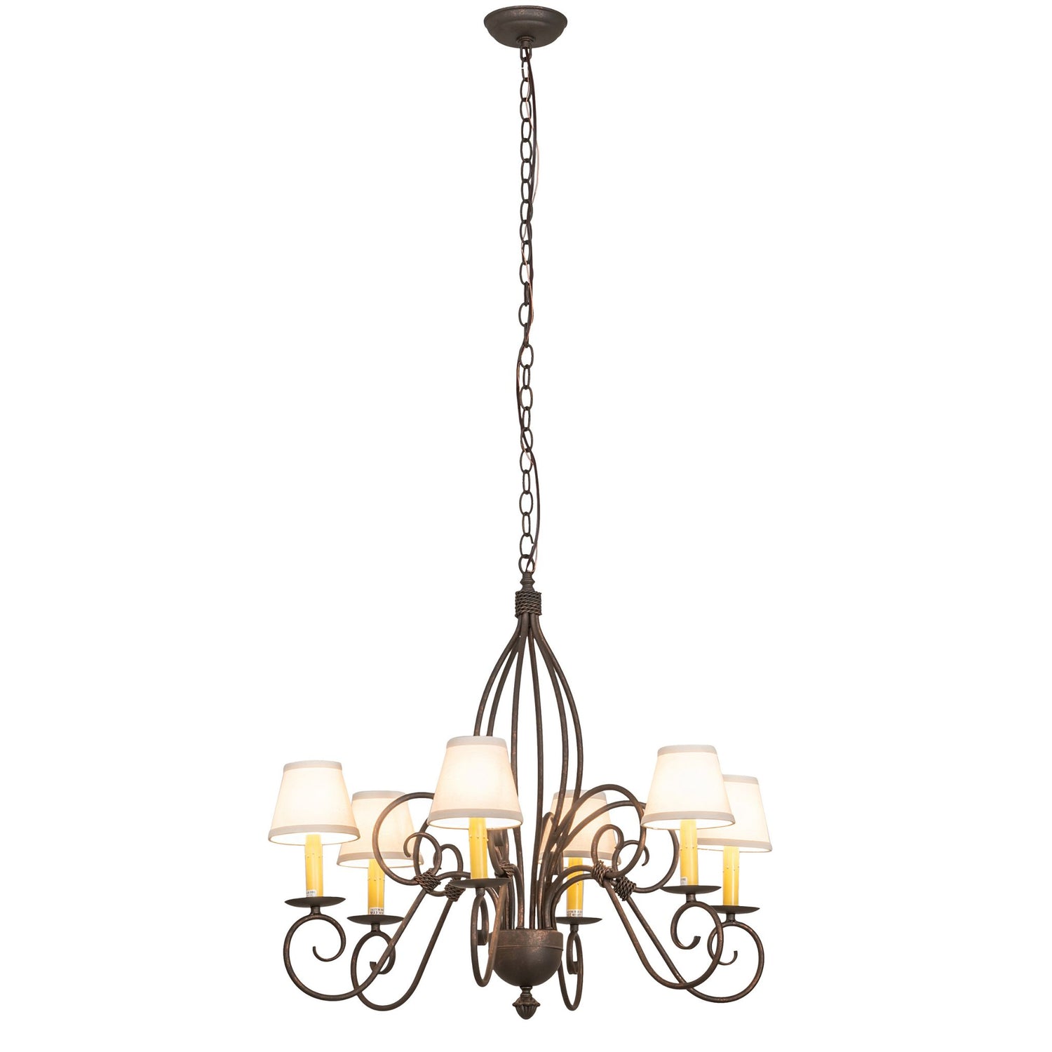 Squire 6-Light Chandelier in Gilded Tobacco with Fabric Shades, 30″ Wide is backordered and will ship as soon as it is back in stock.