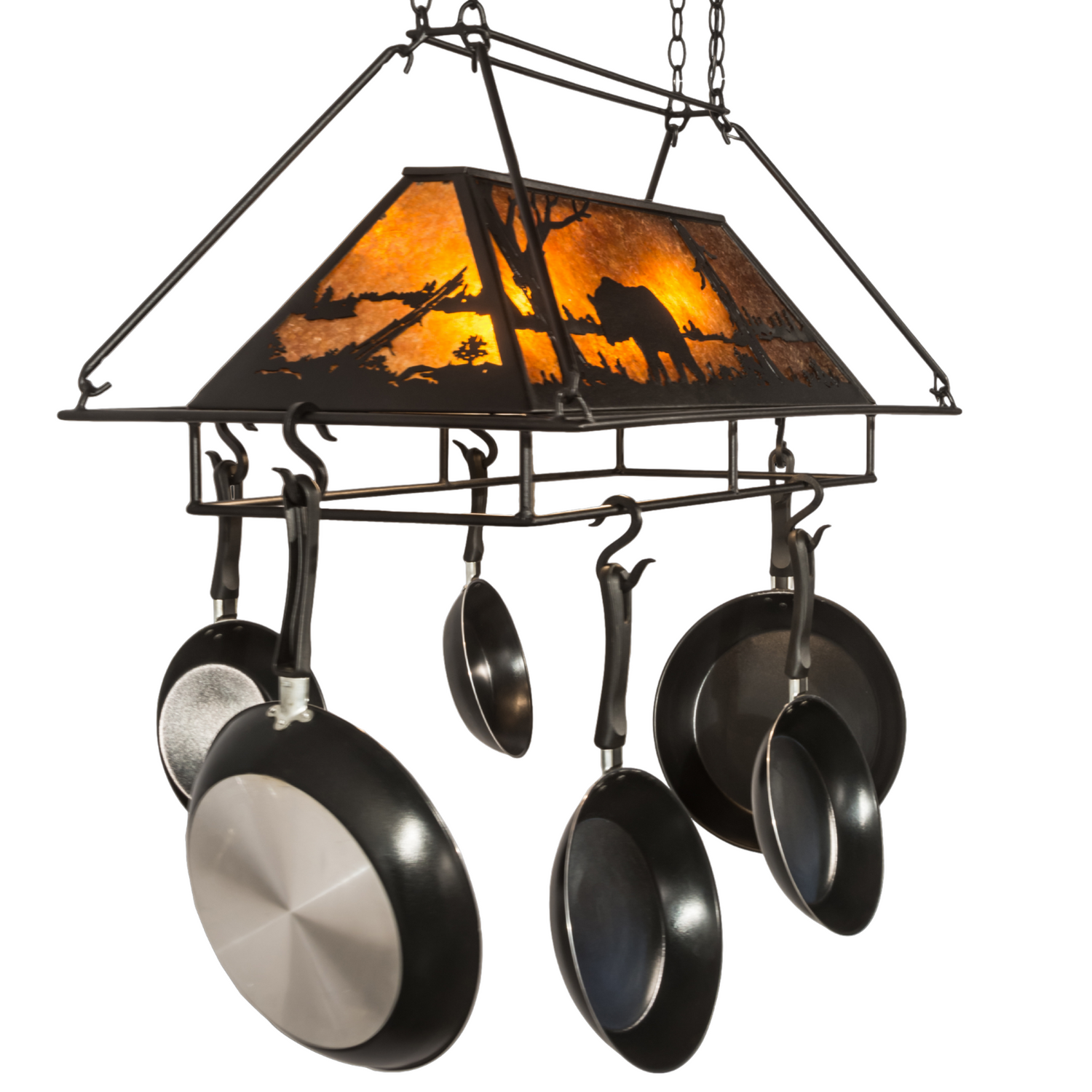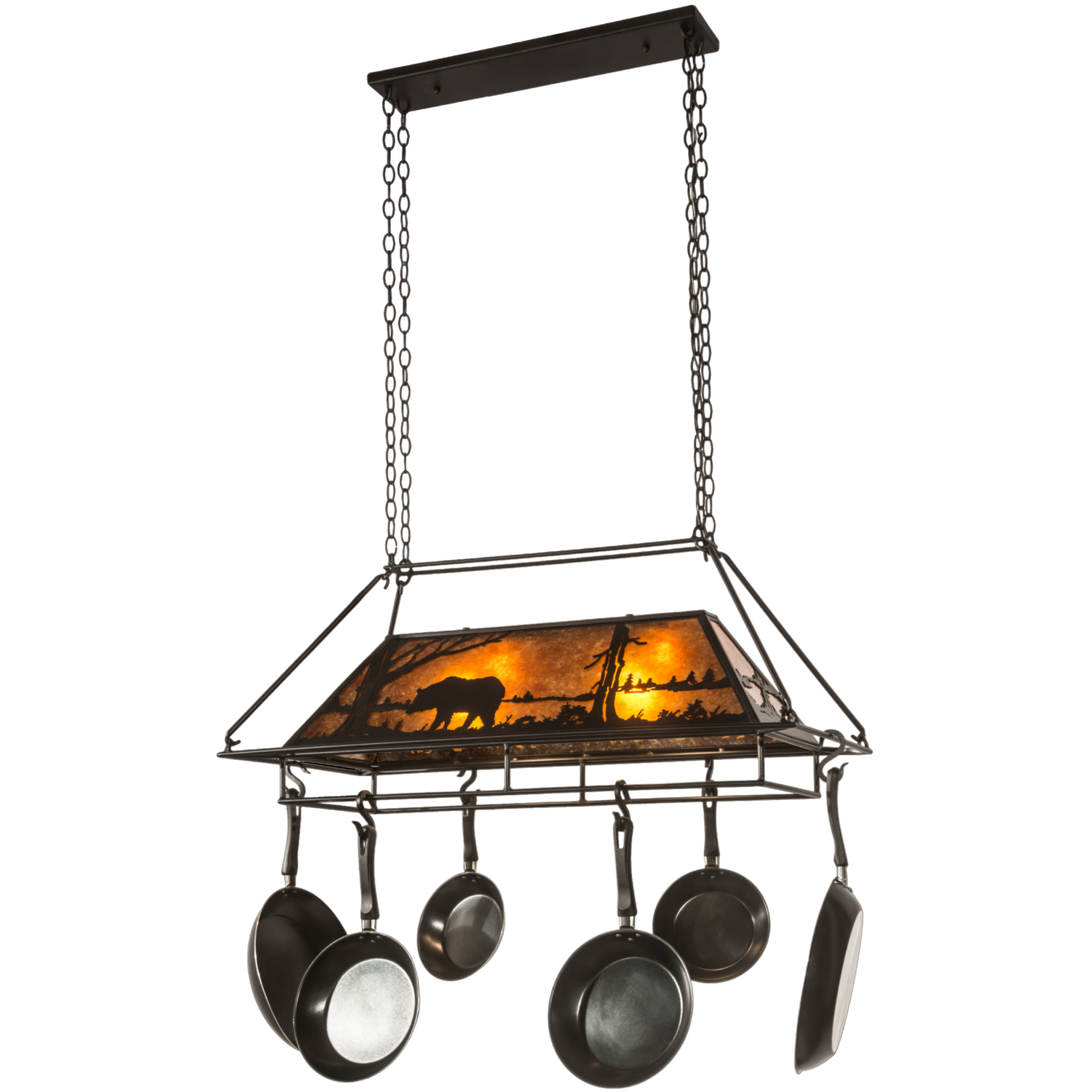 Bear at Lake Lighted Pot Rack with Amber Mica Panels, 39" Long is backordered and will ship as soon as it is back in stock.