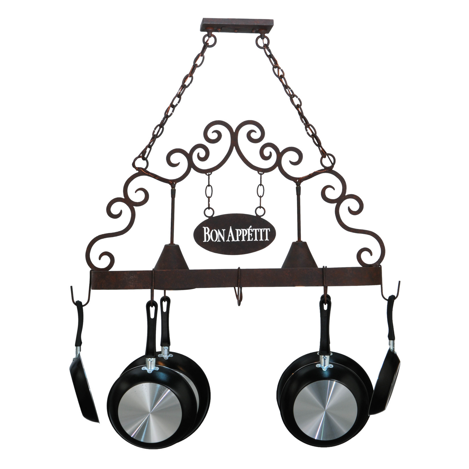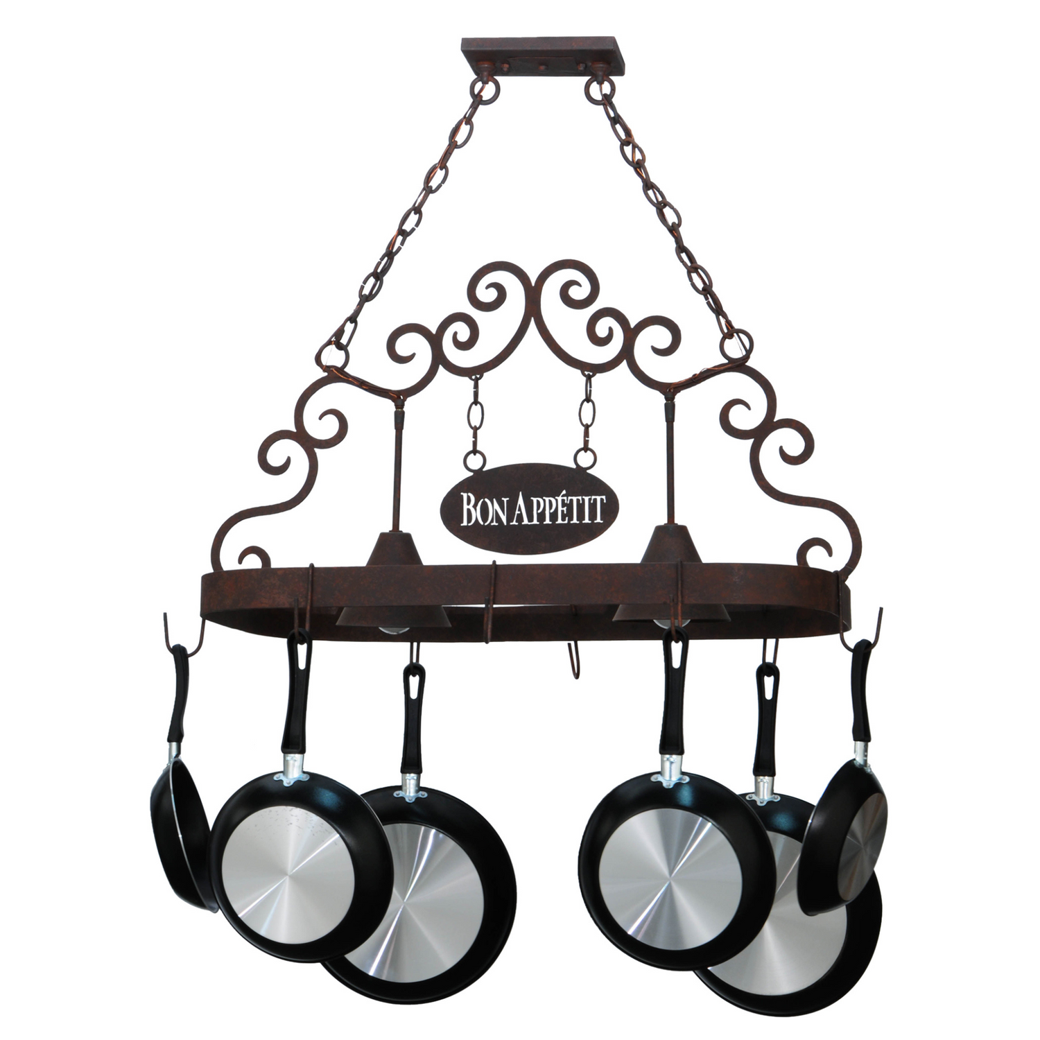 Bon Appetit 2-Light Pot Rack Chandelier with Scroll Accents, 34" Long