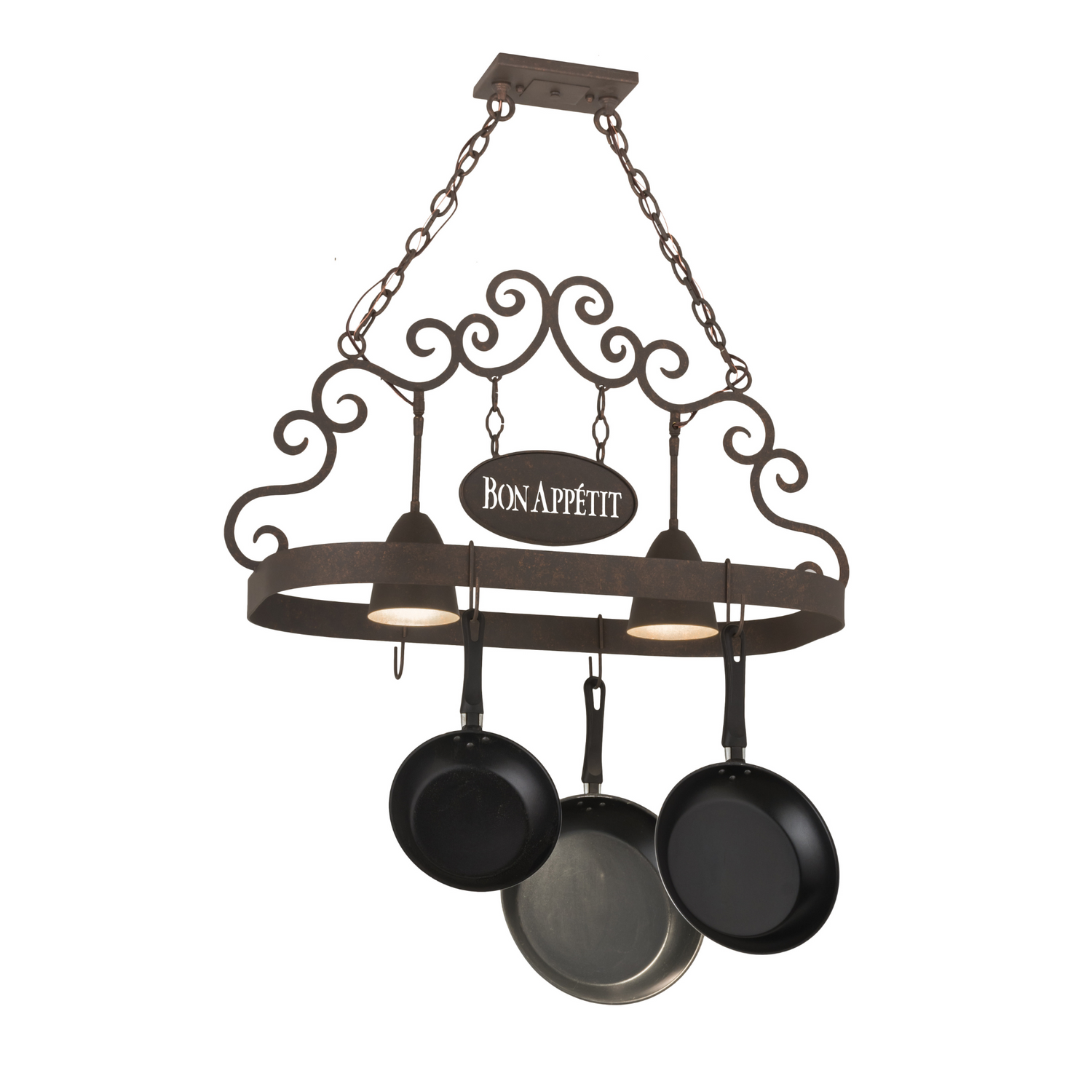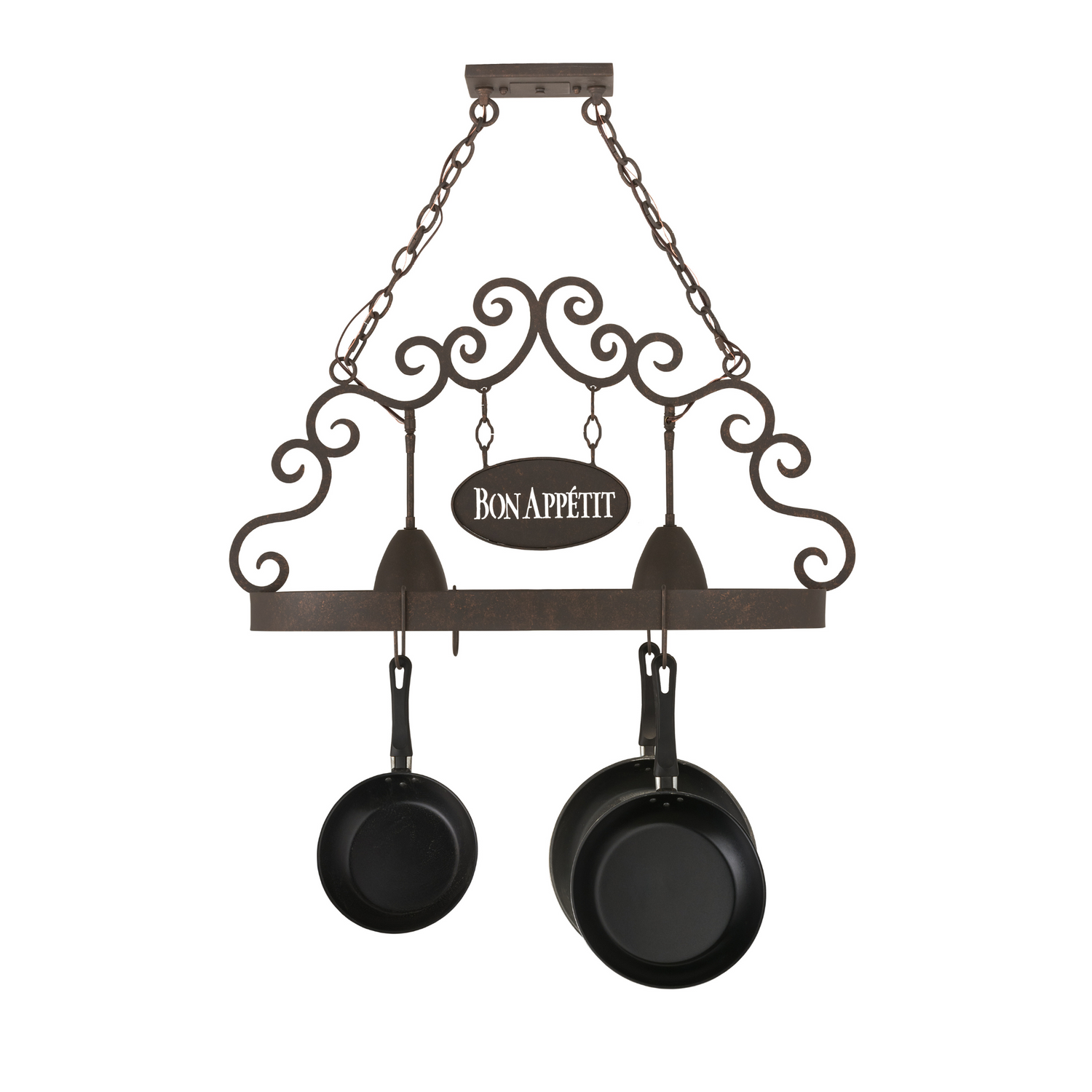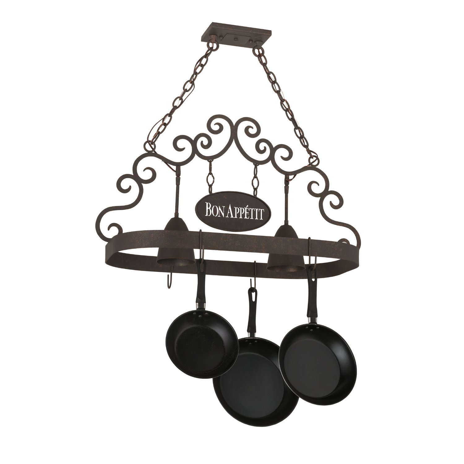 Bon Appetit Cajun Spice 2 Light Pot Rack with Scroll Accents, 34" Long