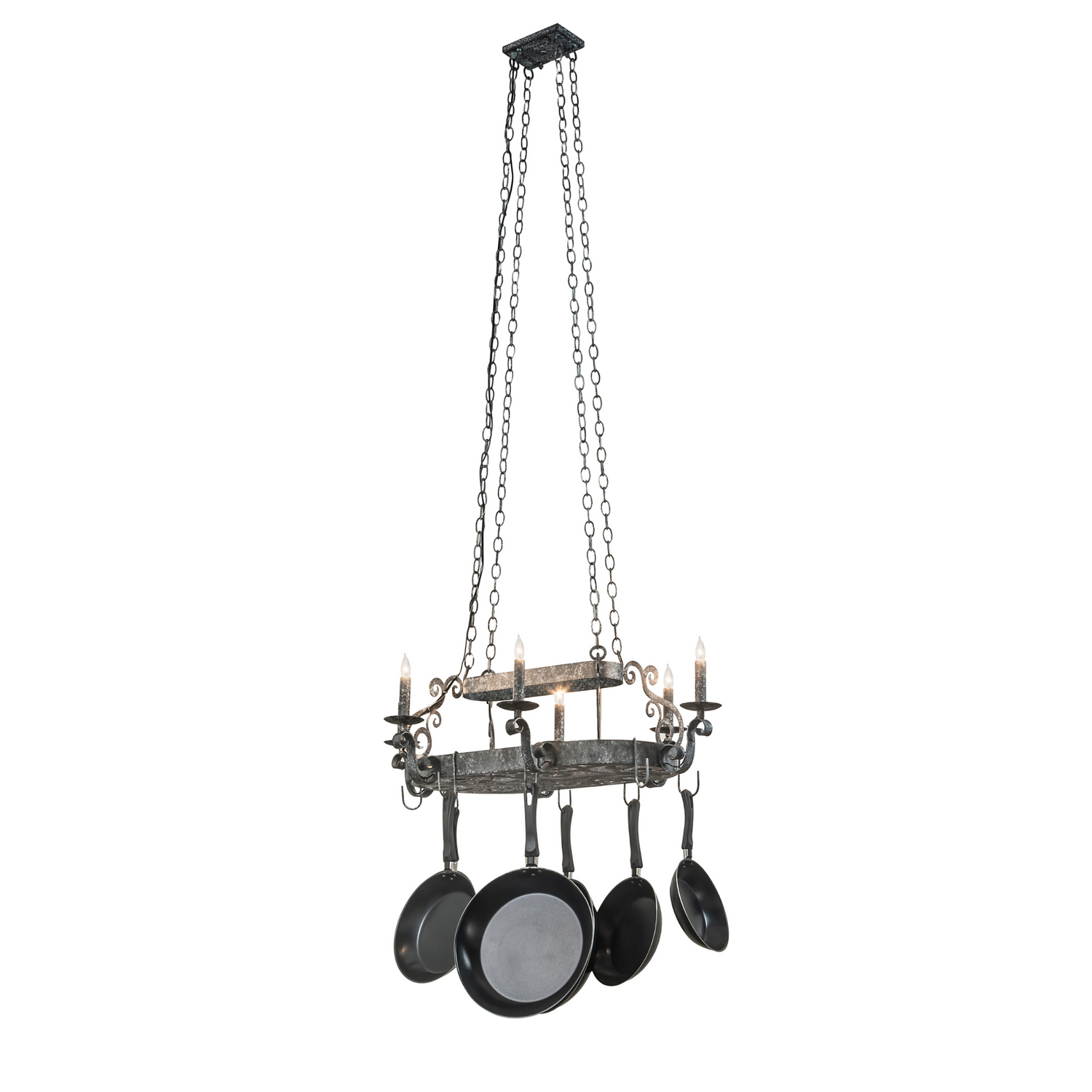 Neo 6-Light Pot Rack Chandelier with Scroll Accents, 38" Long