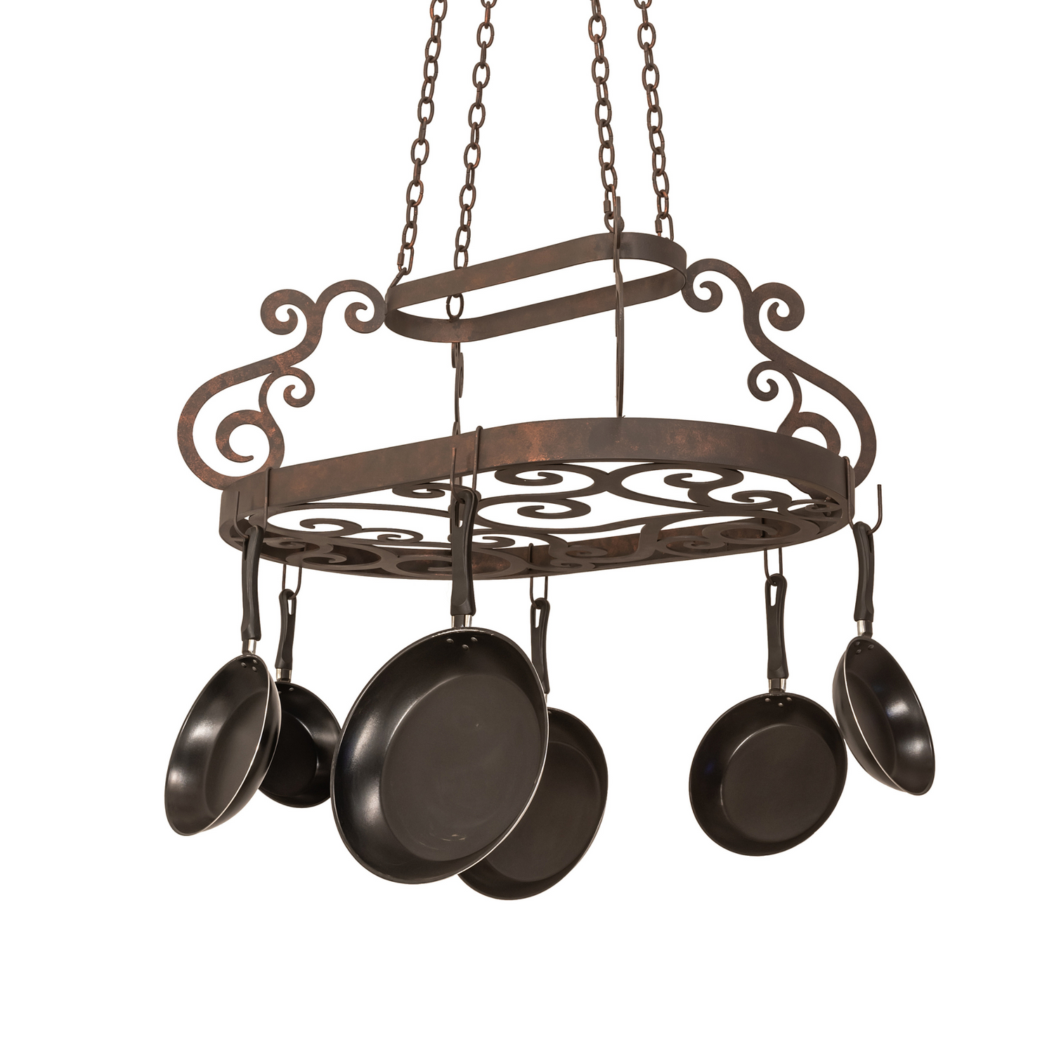 Neo Pot Rack with Hand-Forged Scroll Accents, 38" Long