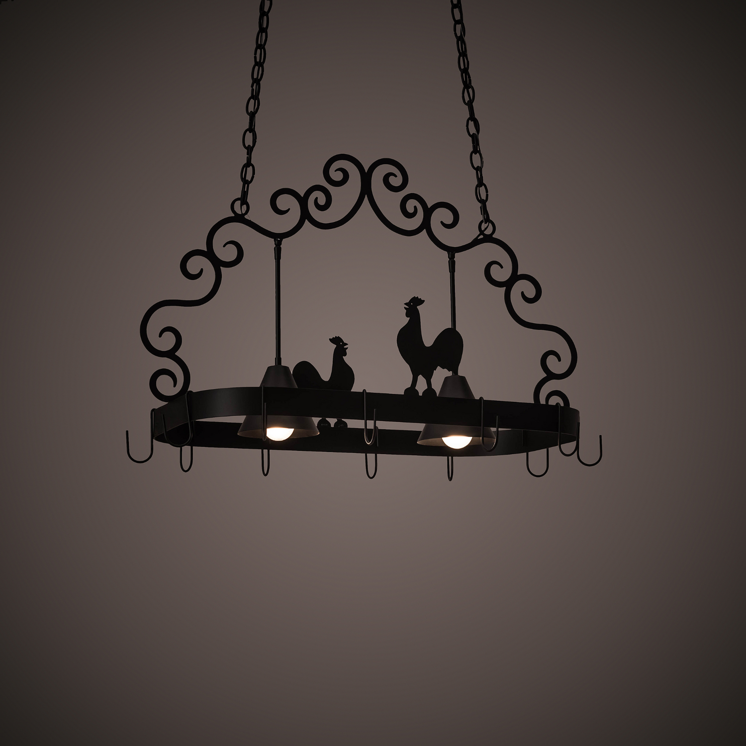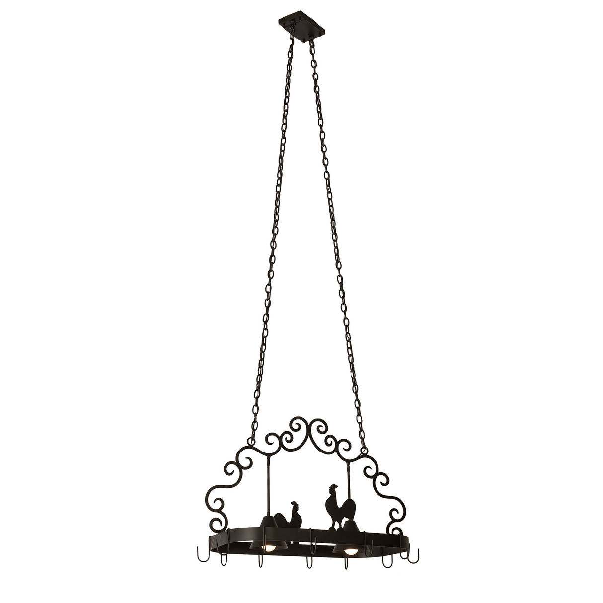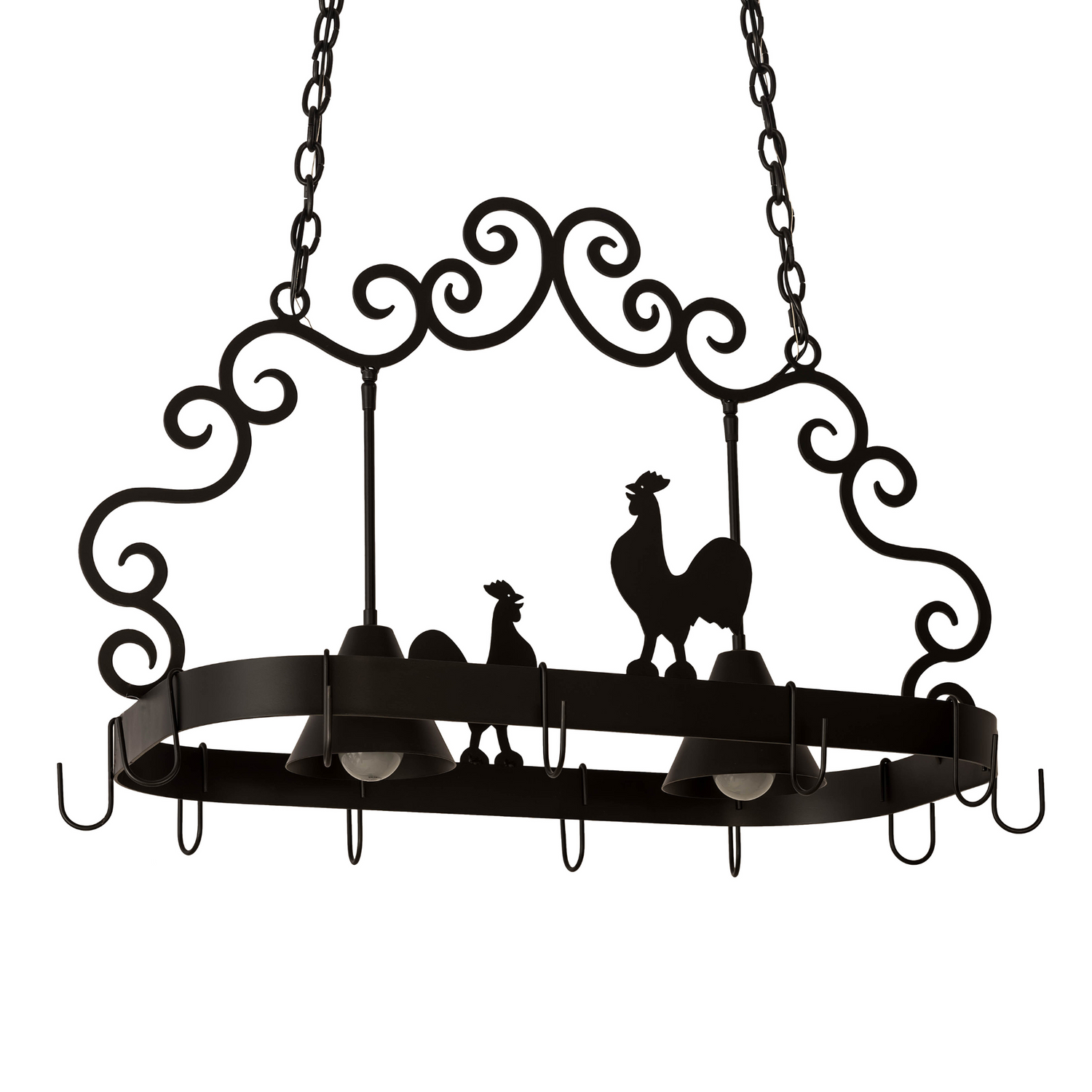 Poulet 2-Light Pot Rack Chandelier with Scroll Accents, 32" Long is backordered and will ship as soon as it is back in stock.