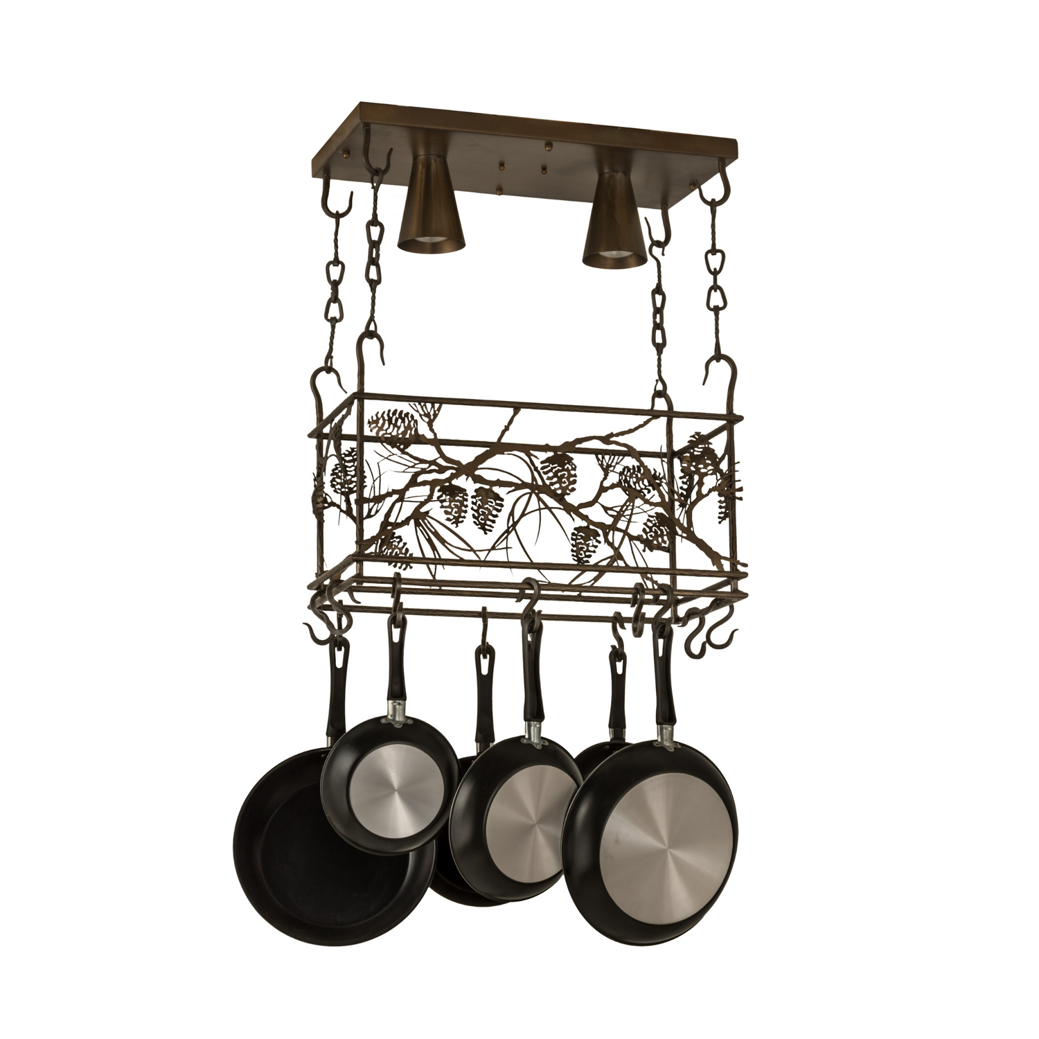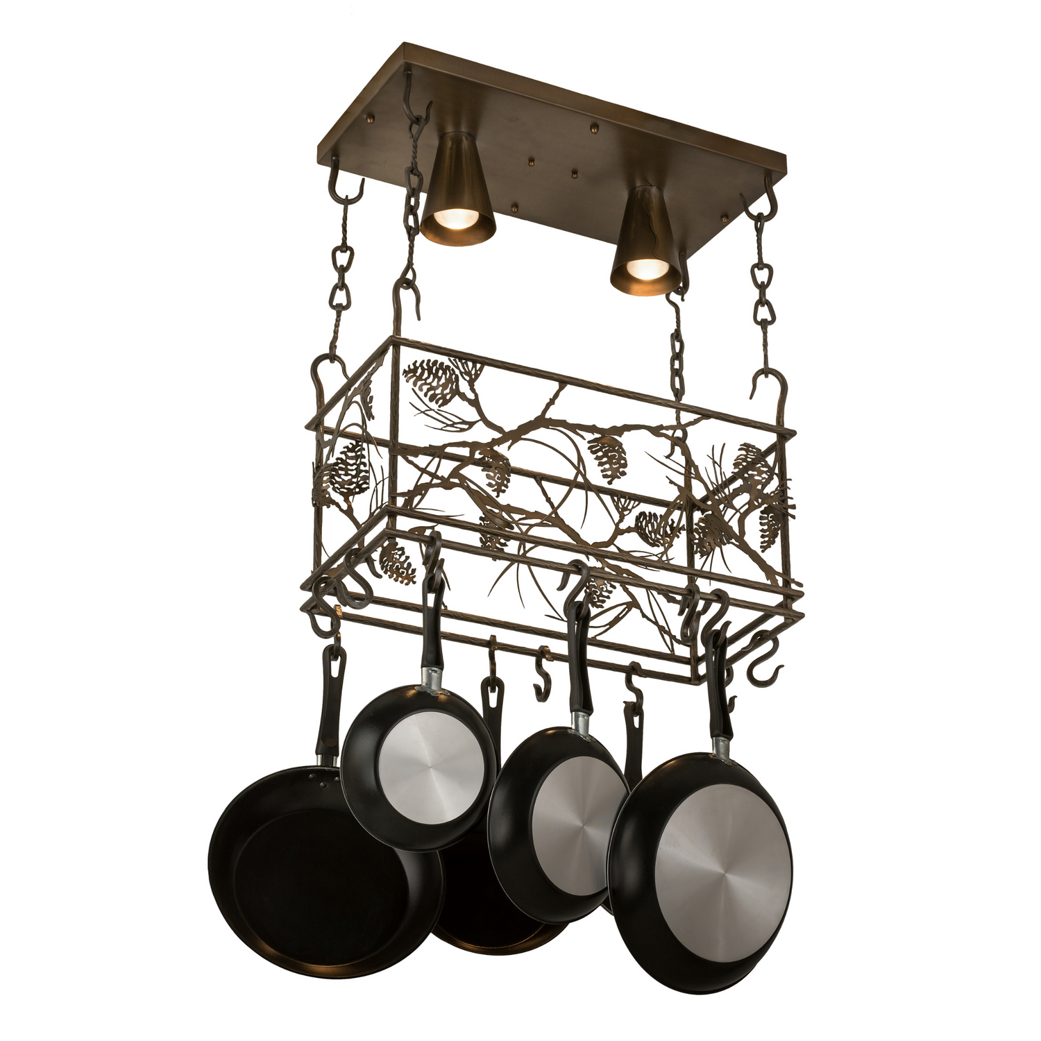 Whispering Pines 2-Light Pot Rack Chandelier with Pinecone Accents, 24" Long